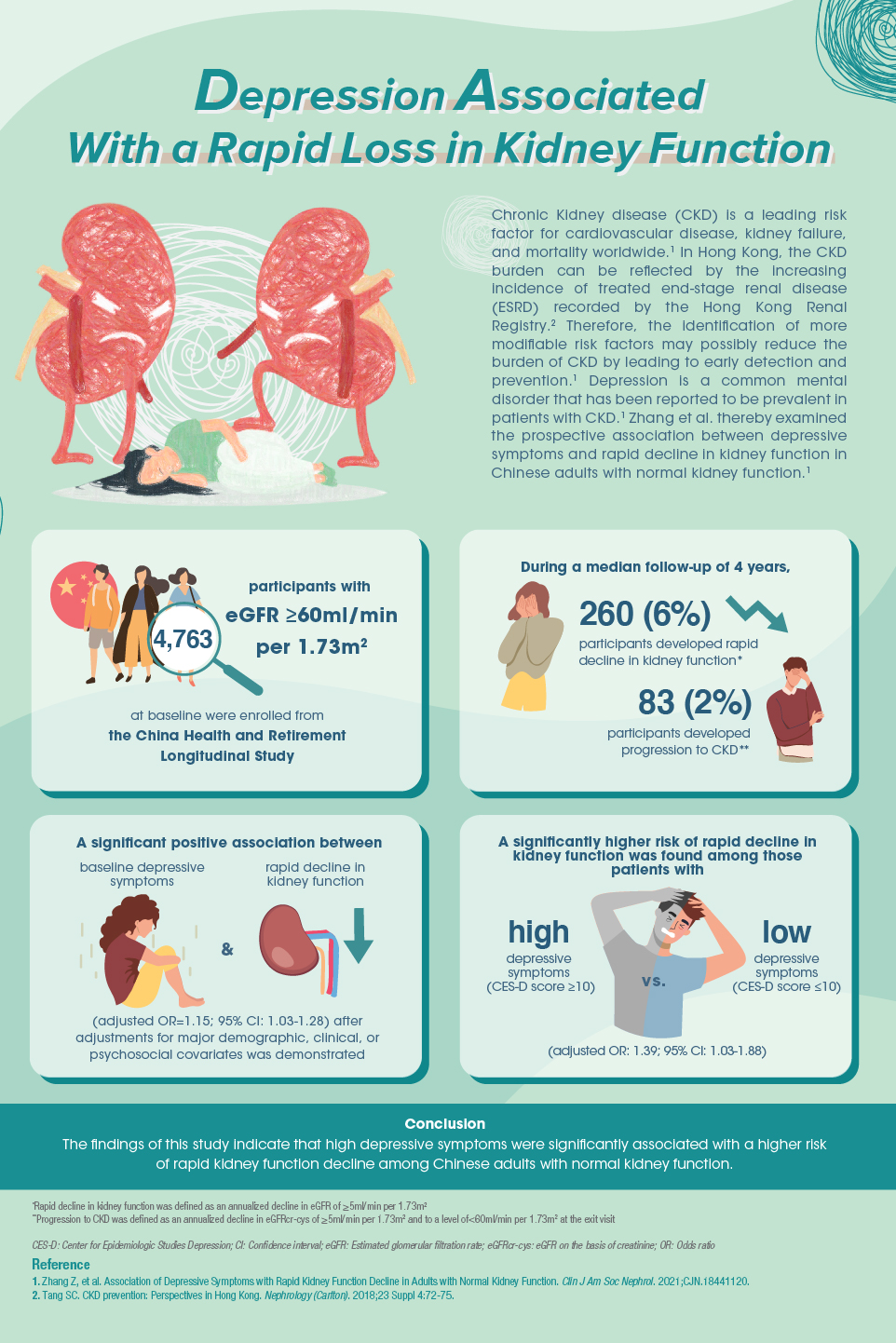 - Zhang Z, et al. Association of Depressive Symptoms with Rapid Kidney Function Decline in Adults with Normal Kidney Function. Clin J Am Soc Nephrol. 2021;CJN.18441120.
