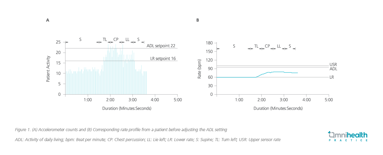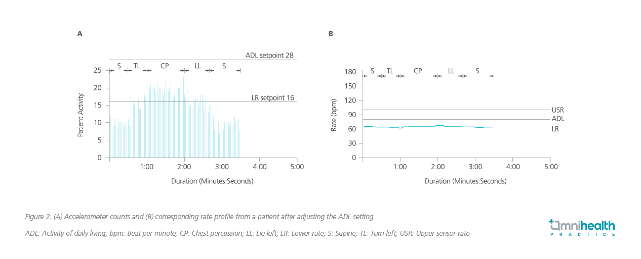 In that patient, Dr. Lee increased the ADLR setting from 22 to 28.10 This adjustment allowed only minor rate changes during turning and chest percussion, while permitting rate adaption during assisted walking (figure 2).10 “In sedentary patients, it is essential to make appropriate changes of LR, ADLR and UR setpoints in leadless pacemakers, thus providing an optimized rate response from the RPO algorithm,” Dr. Lee stressed.