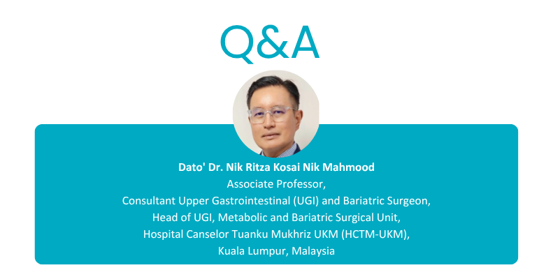 Dato’ Dr. Nik Ritza: One of the most immediate barriers is cost, particularly as ESG is not yet included in the national bariatric guidelines and therefore remains unreimbursed. In addition, the procedure demands a high level of technical expertise, and local training capacity is still in its early stages. Awareness remains limited among both healthcare providers and the public, with many perceiving obesity treatments as a binary choice between medication and surgery—overlooking ESG as a viable option. Fundamentally, broader uptake will depend on formal policy inclusion, insurance coverage, and the establishment of training and awareness initiatives to bridge this gap in care.