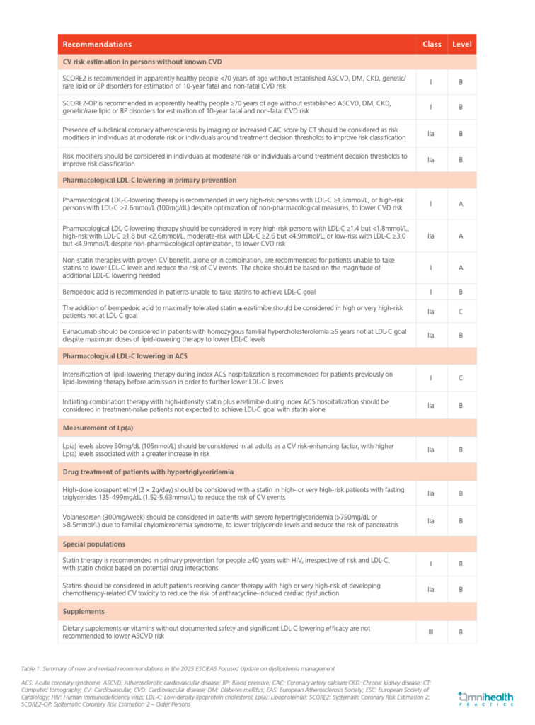 In summary, the 2025 ESC/EAS Focused Update provides additive and revised recommendations to the 2019 guidelines, reflecting the latest evidence from randomized controlled trials and meta analyses.1 By updating CV risk assessment methods and incorporating new therapeutic strategies, the update aims to strengthen clinical decision-making, improve precision of therapy and enhance ASCVD prevention.1