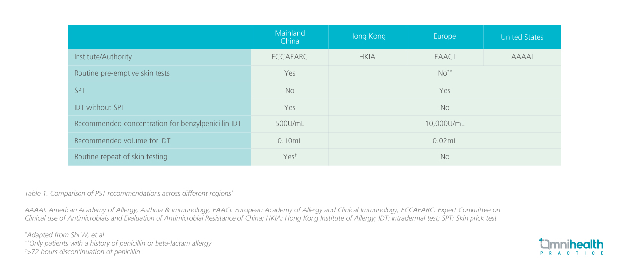 In Hong Kong, the approach generally aligns with international standards, treating penicillin allergy primarily as a clinical diagnosis that emphasizes the importance of taking a comprehensive history prior to choosing appropriate allergy tests.5 Physicians assess patients’ clinical histories, and if an allergy is suspected, they initiate PST, typically starting with a skin prick test (SPT) before intradermal tests (IDT) to confirm the diagnosis.5 While PST is a valuable diagnostic tool, it is essential to recognize that it does not replace clinical judgment, as it can yield both false positives and false negatives that may lead to misinterpretation.5