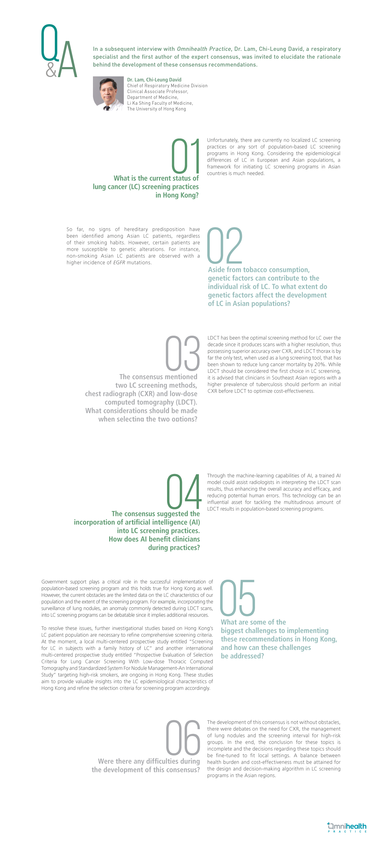- Lam DCL, et al. Lung Cancer Screening in Asia: An Expert Consensus Report. J Thorac Oncol. 2023;18(10):1303-1322.